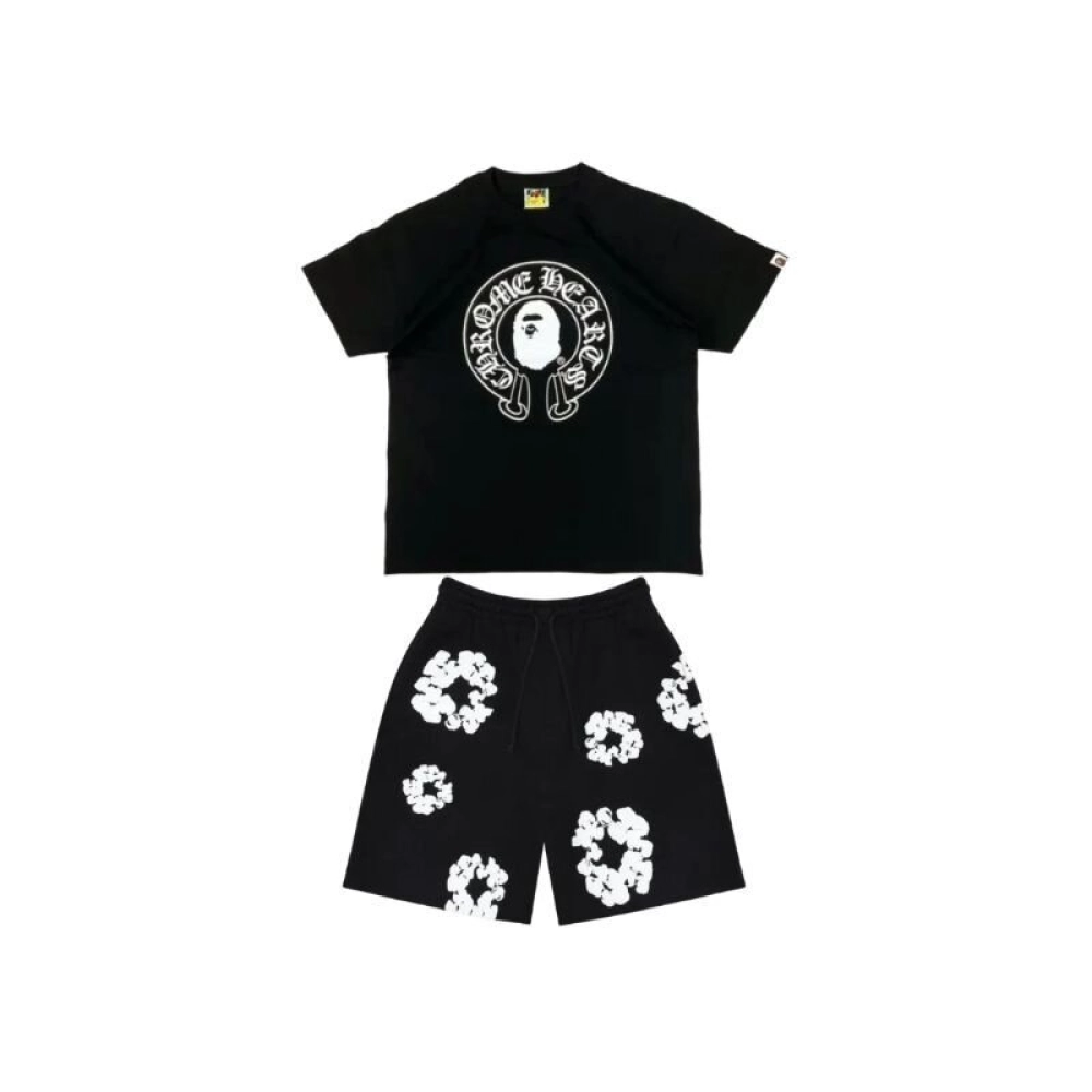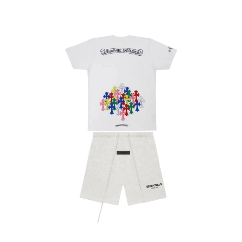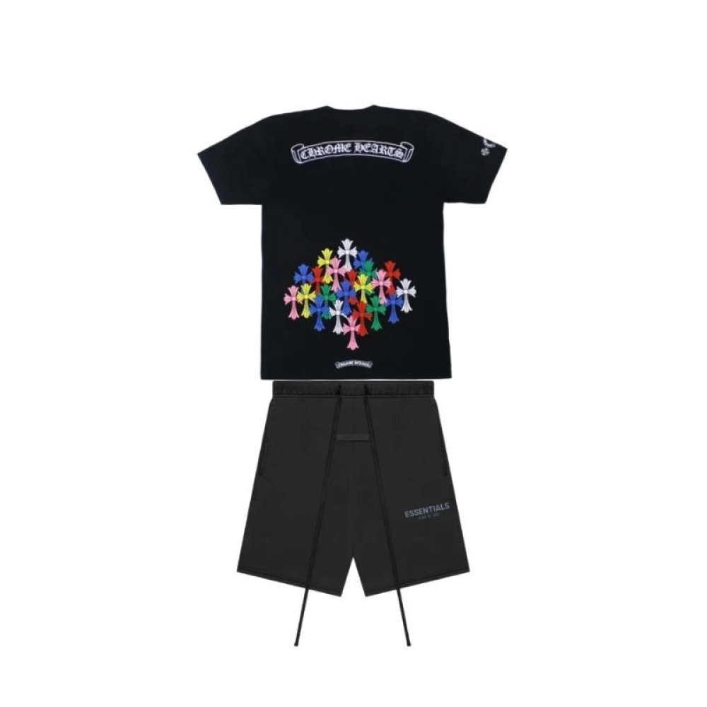 Chrome Hearts Multi Color Cross T-shirt Black+Fear of God Essentials Shorts (SS21) BlackStretch Limo
